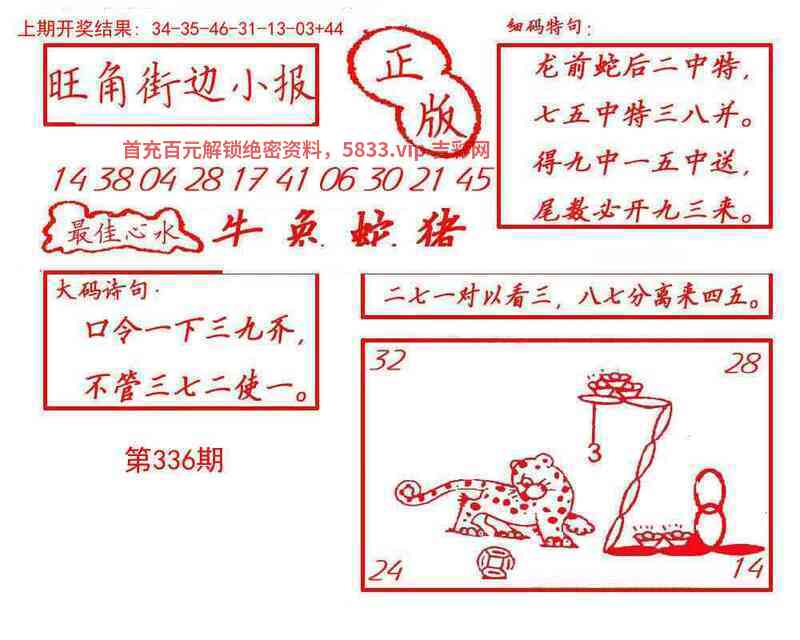 | 336期 | 猪 | 蓝波双 | 6尾 | 开牛17 |